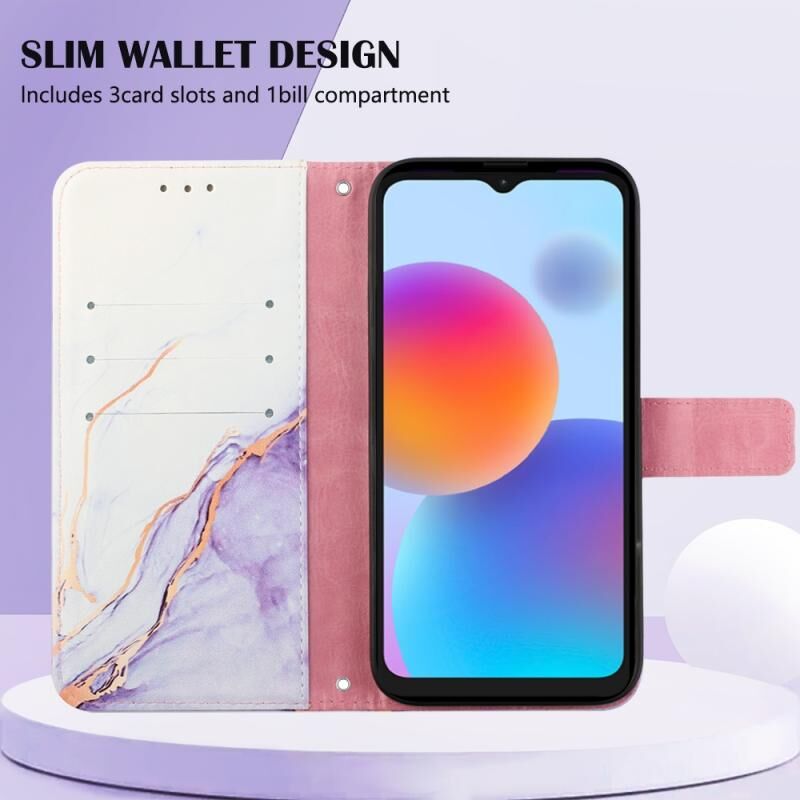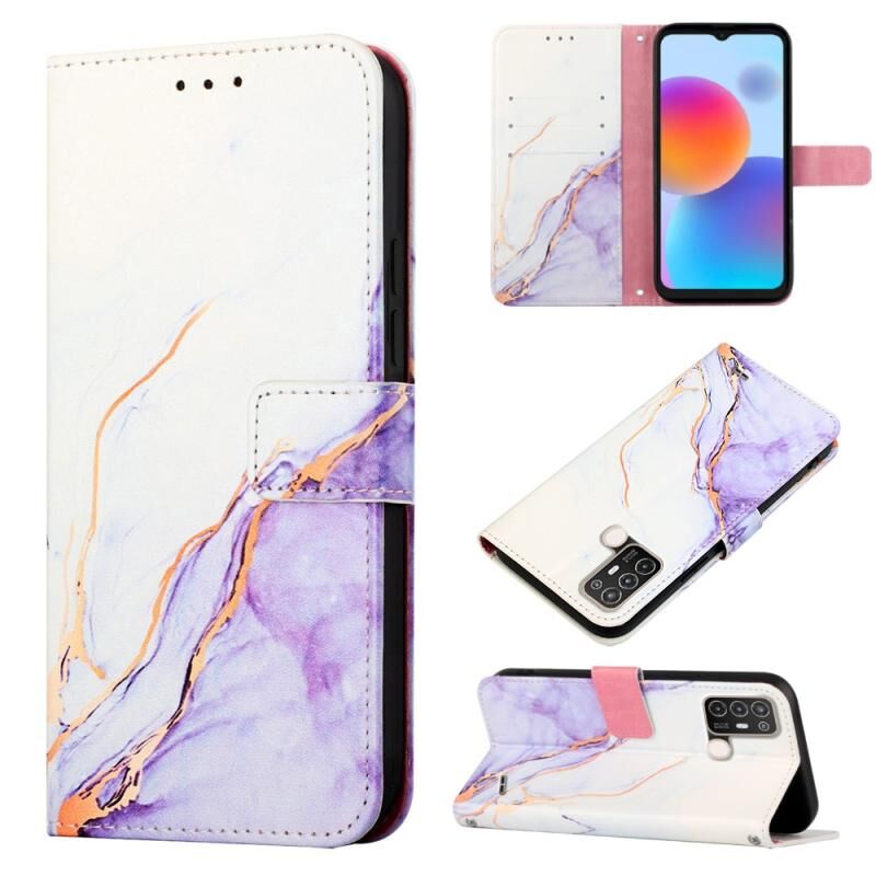 Θήκη τηλεφώνου από δέρμα με σχέδιο μαρμάρου για ZTE Blade A52 PT003 (Ροζ Μωβ)