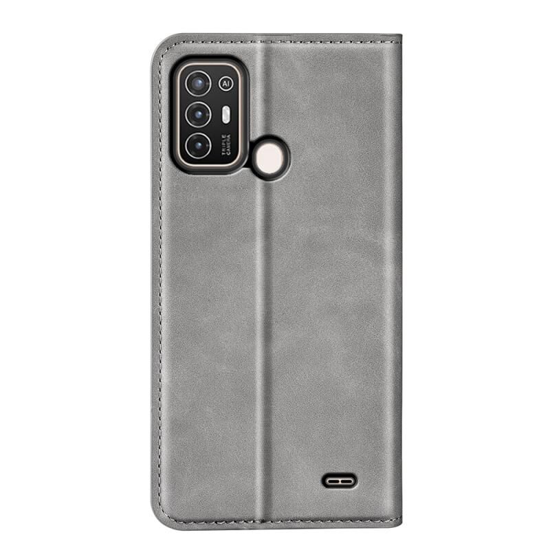 Για ZTE Blade A52 Retro-skin Μαγνητική δερμάτινη θήκη τηλεφώνου αναρρόφησης (γκρι)