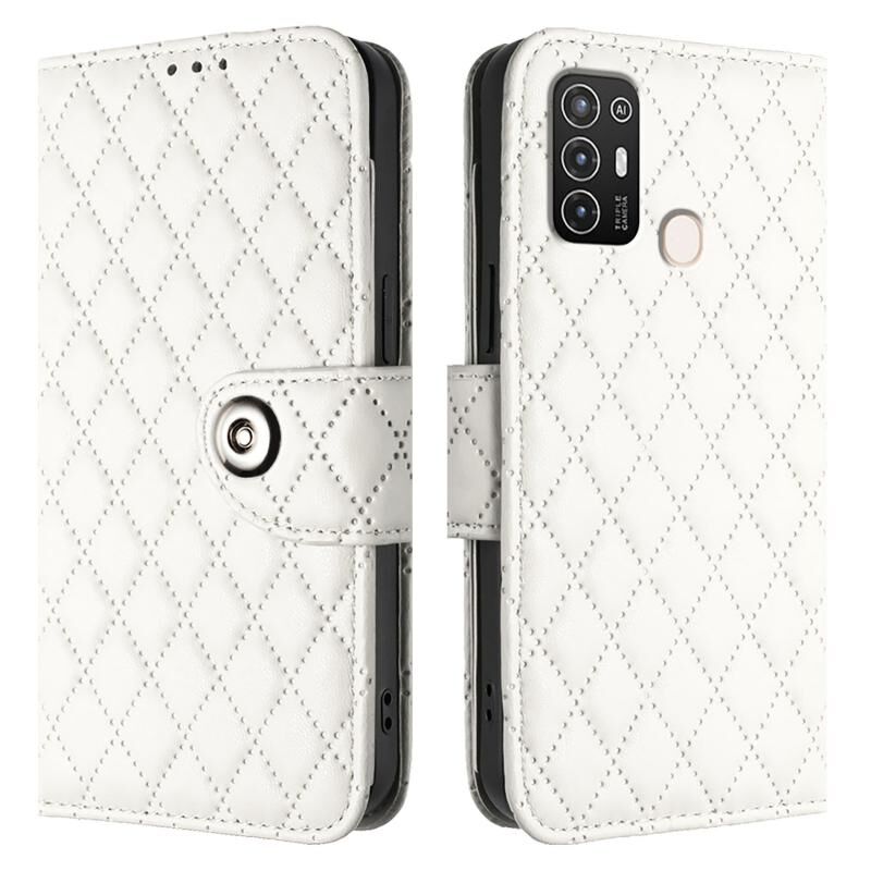 Για το ZTE Blade A52 Rhombic Texture Flip δερμάτινη θήκη τηλεφώνου με κορδόνι (λευκό)