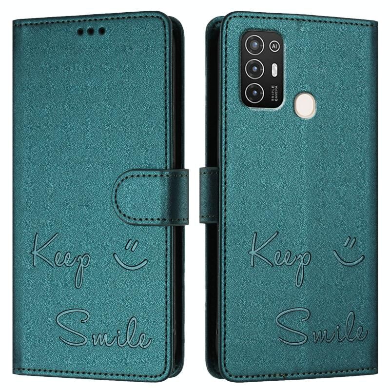 Για ZTE Blade A52 Χαμόγελο ανάγλυφο RFID δερμάτινη θήκη τηλεφώνου (Peacock Green)