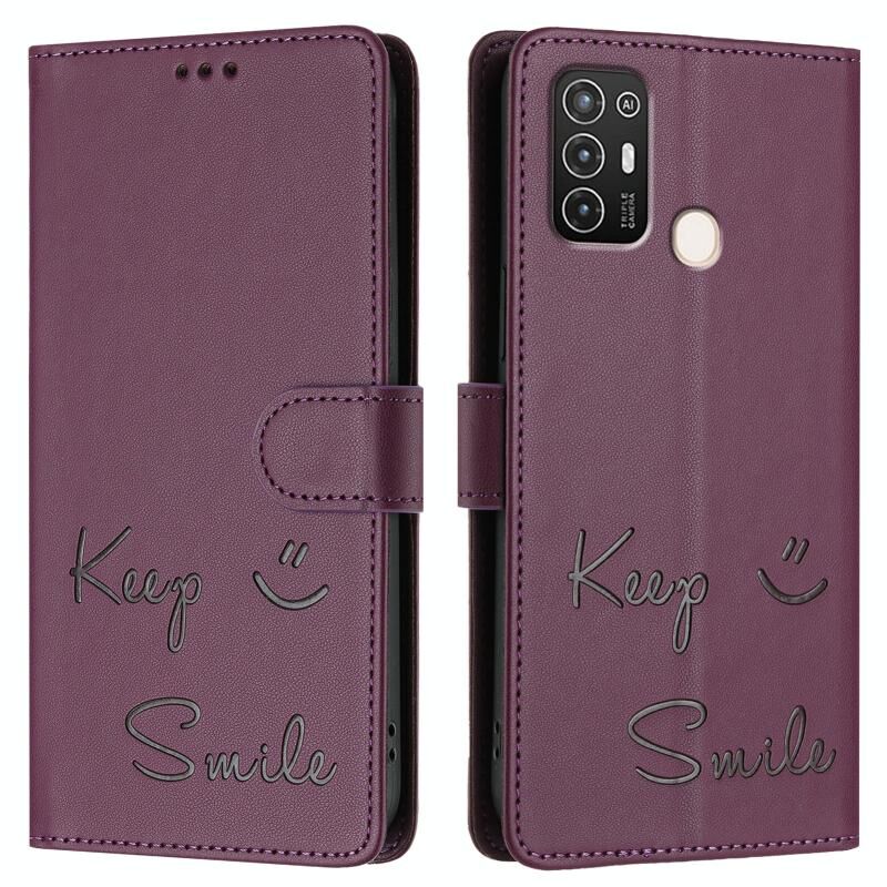 Για ZTE Blade A52 Χαμόγελο ανάγλυφο RFID δερμάτινη θήκη τηλεφώνου (Violet)