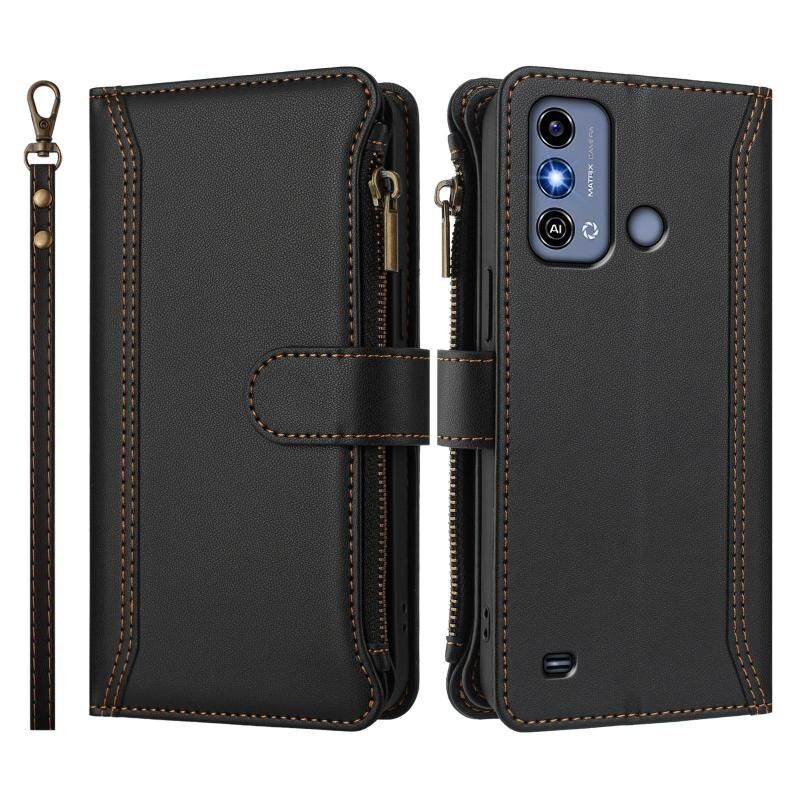 For ZTE Blade A53 / A53+ Magnetic Closure 9 Card Slots Zipper Leather Case with Hand Strap(Black)