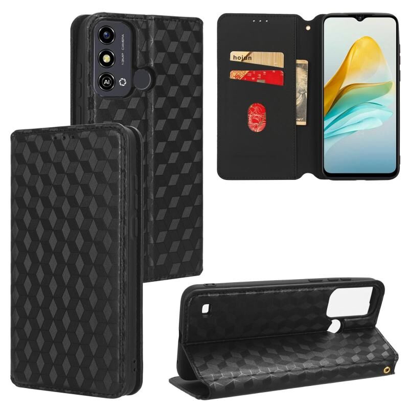 For ZTE Blade A53 Cubic Grid Texture Flip Leather Phone Case(Black)