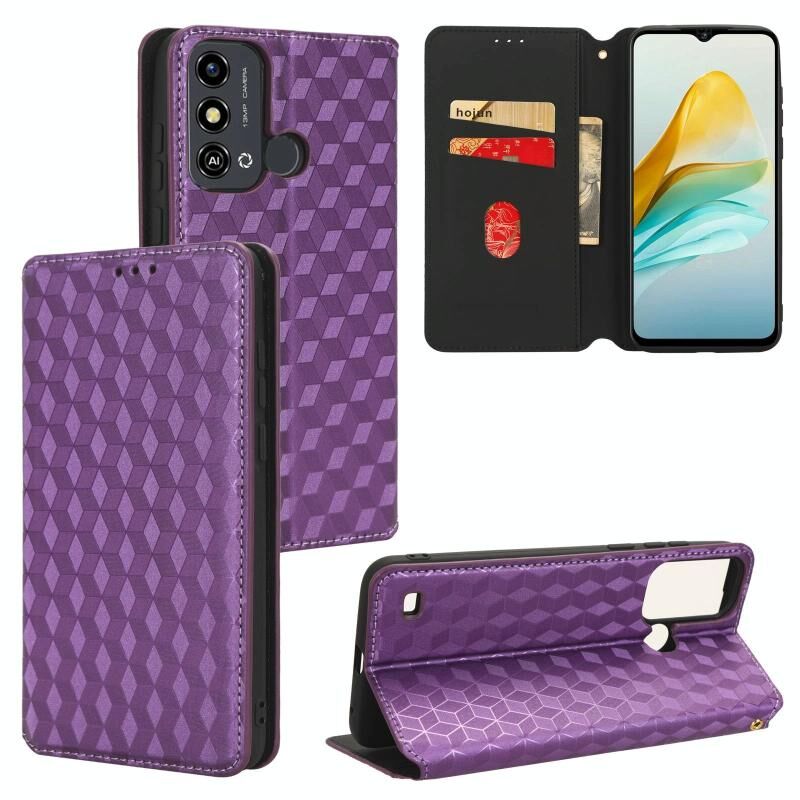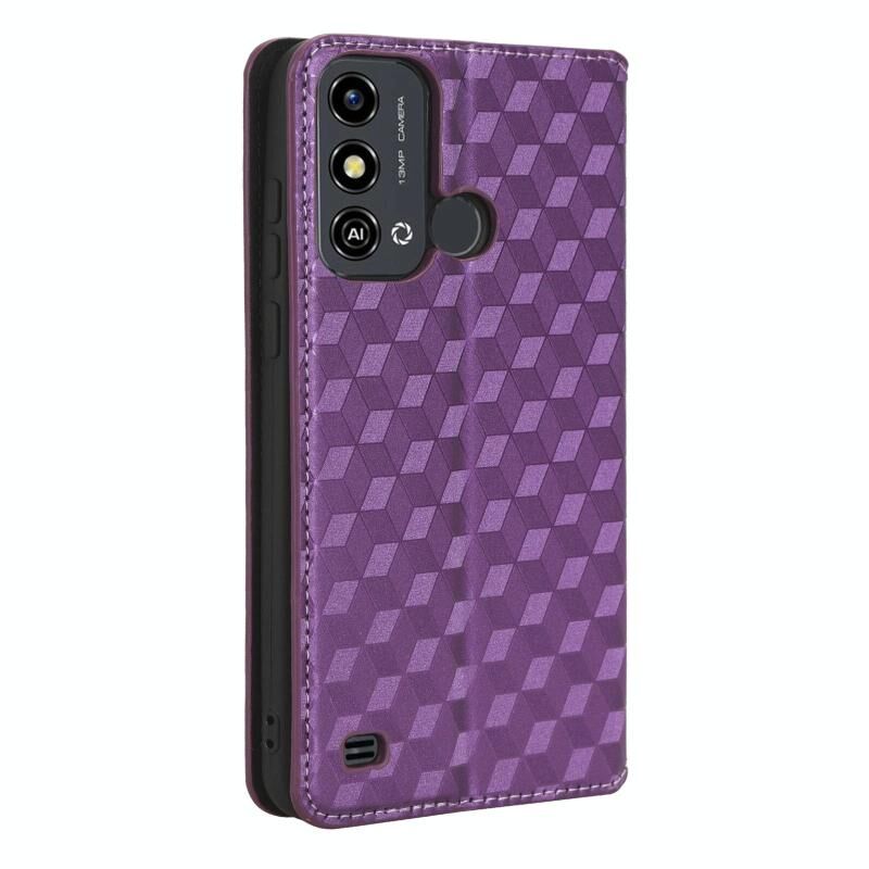 For ZTE Blade A53 Cubic Grid Texture Flip Leather Phone Case(Purple)