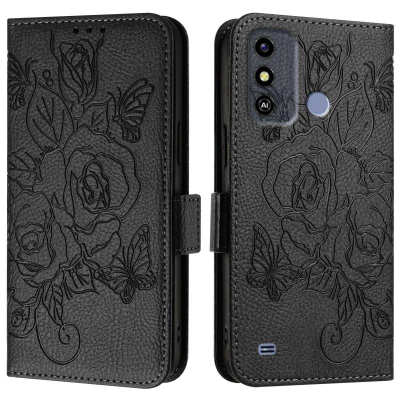 For ZTE Blade A53 Embossed Rose RFID Anti-theft Leather Phone Case(Black)