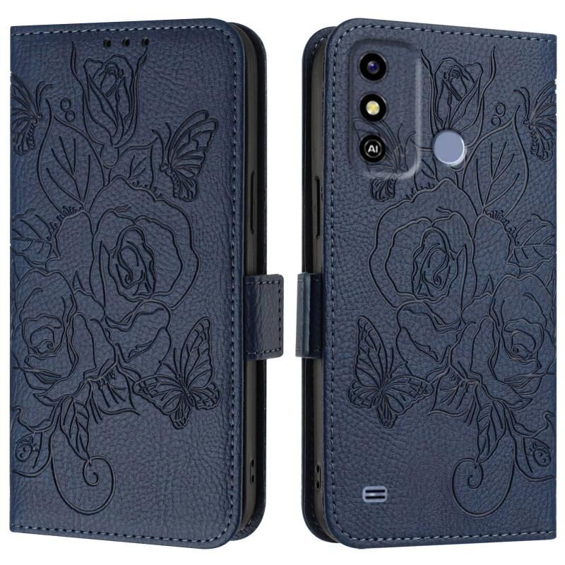 For ZTE Blade A53 Embossed Rose RFID Anti-theft Leather Phone Case(Dark Blue)