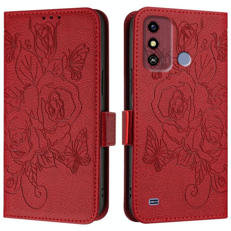 For ZTE Blade A53 Embossed Rose RFID Anti-theft Leather Phone Case(Red)