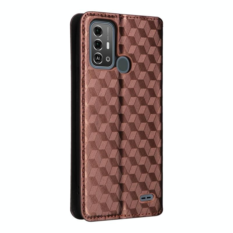For ZTE Blade A53 Pro Cubic Grid Texture Flip Leather Phone Case(Brown)