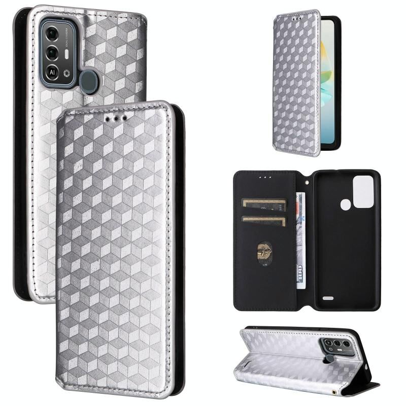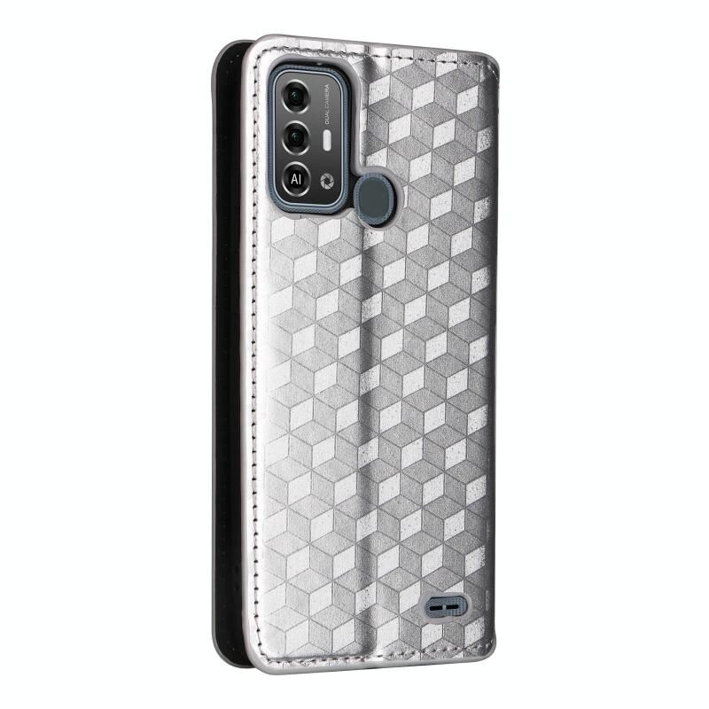 For ZTE Blade A53 Pro Cubic Grid Texture Flip Leather Phone Case(Silver)