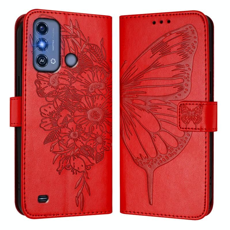 For ZTE Blade A53 Pro Embossed Butterfly Leather Phone Case(Red)