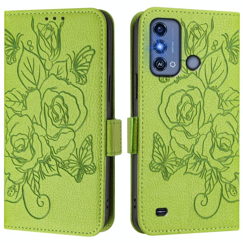 For ZTE Blade A53 Pro Embossed Rose RFID Anti-theft Leather Phone Case(Green)
