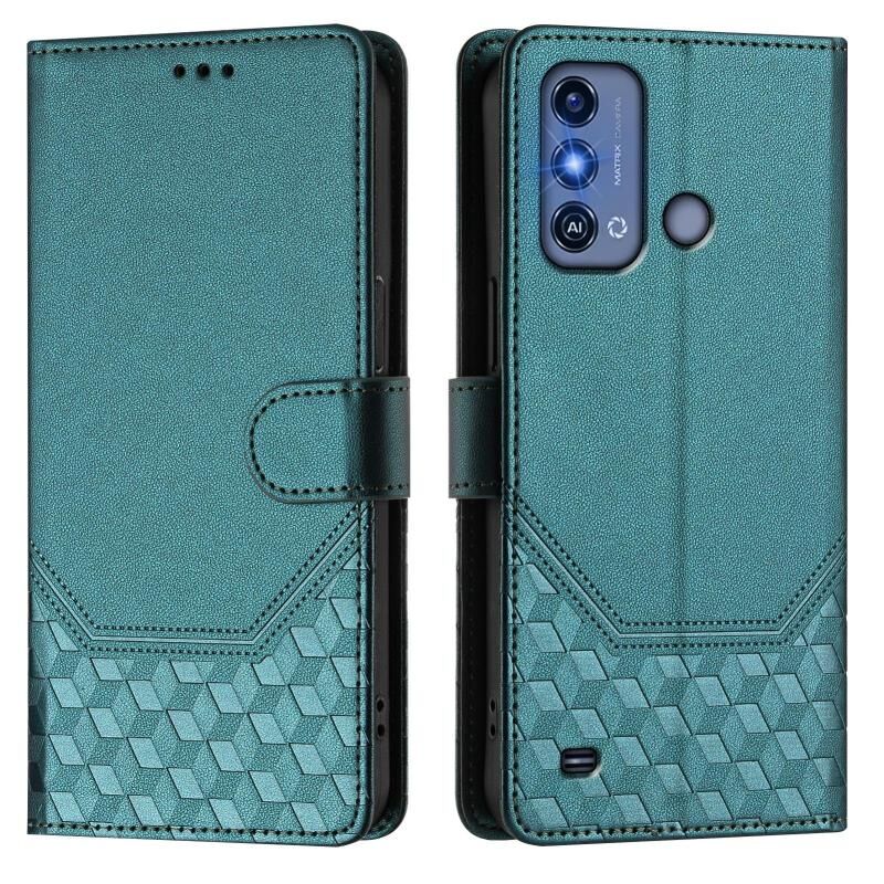 For ZTE Blade A53 Pro Honeycomb Embossing RFID Leather Phone Case(Peacock Green)