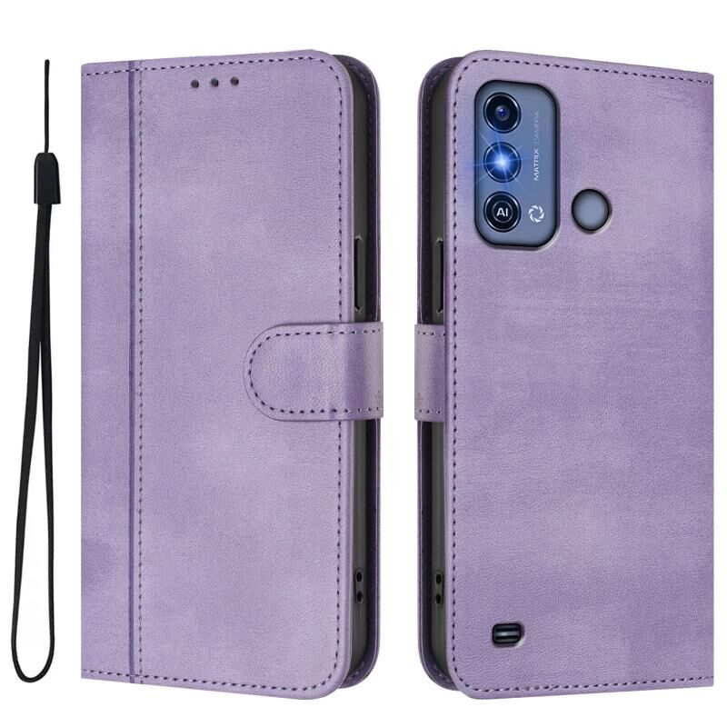 For ZTE Blade A53 Pro Line Splicing Buckle Retro Leather Phone Case(Purple)