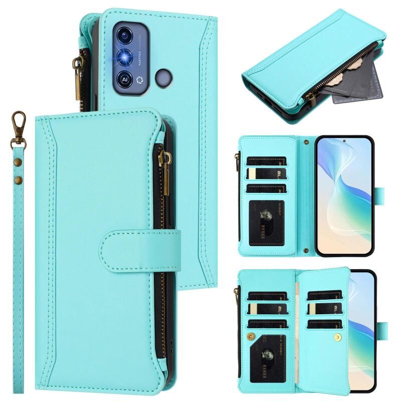 Για ZTE Blade A53 Pro Μαγνητικό Κλείσιμο 9 Θήκες Κάρτας Δερμάτινη Θήκη με Φερμουάρ και Λουρί Χεριού (Σκούρο Μπλε)