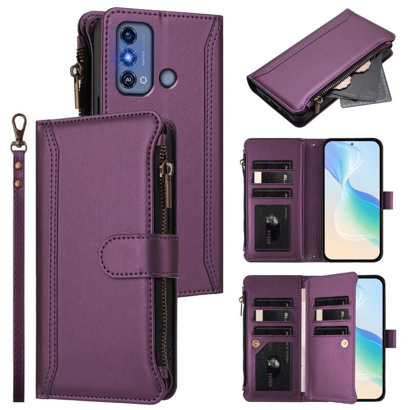 For ZTE Blade A53 Pro Magnetic Closure 9 Card Slots Zipper Leather Case with Hand Strap(Purple)