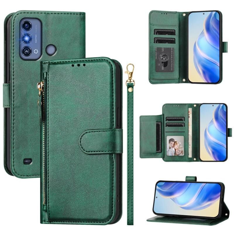 Για ZTE Blade A53 Pro Θήκη Τηλεφώνου Δερμάτινη με Φερμουάρ και Πολλαπλές Θήκες Καρτών (Μαύρο)