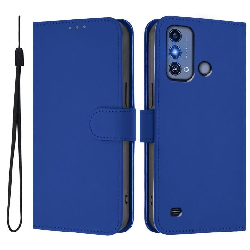 Θήκη τηλεφώνου από δέρμα με συμπαγή χρώματα για ZTE Blade A53 Pro με κορδόνι (Καφέ)