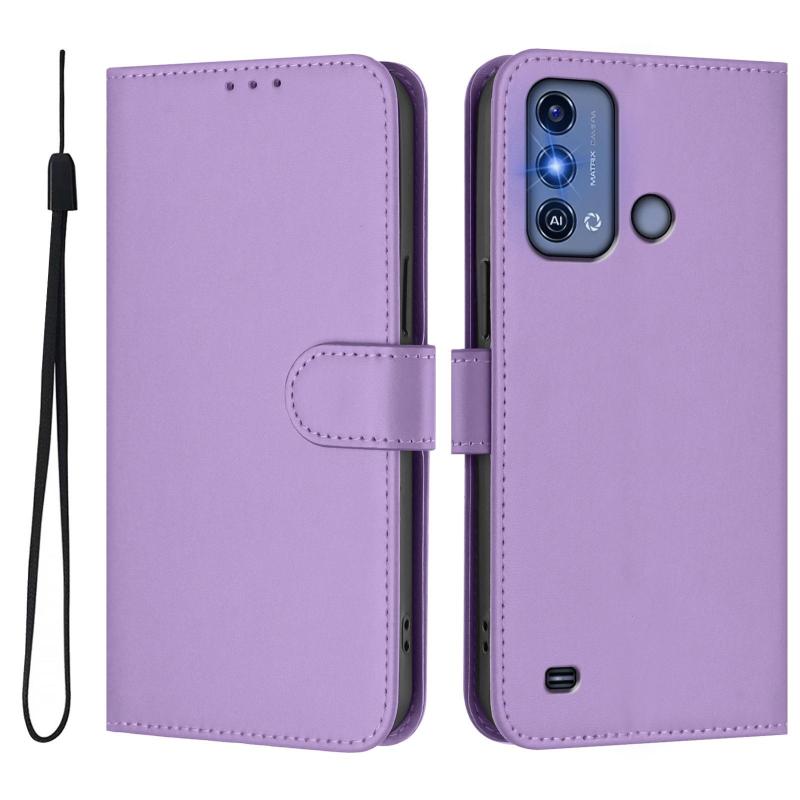 For ZTE Blade A53 Pro Skin Feel Solid Color Leather Phone Case with Lanyard(Lavender Purple)
