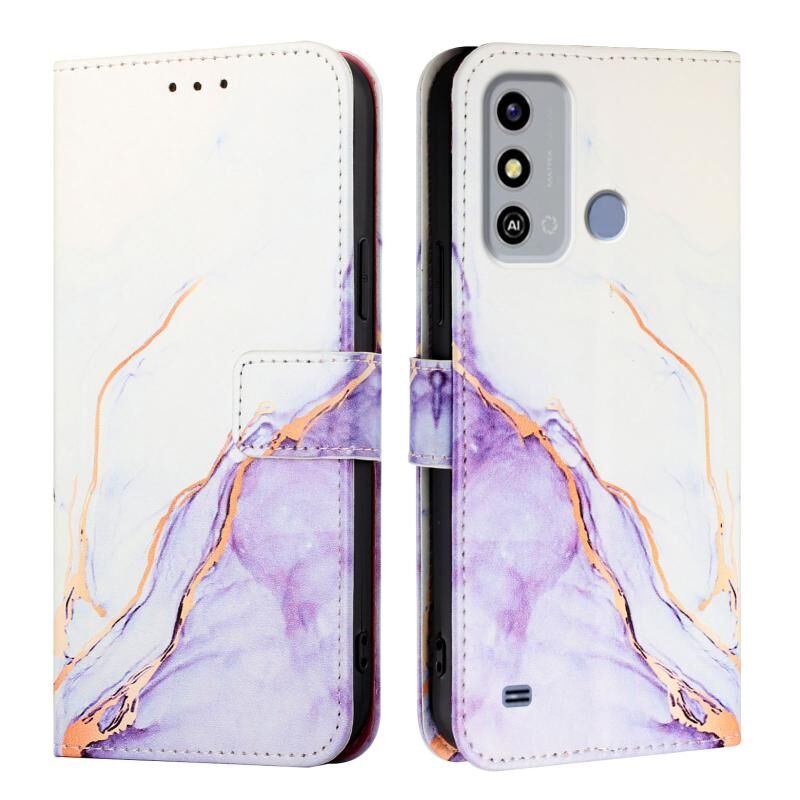 For ZTE Blade A53 PT003 Marble Pattern Flip Leather Phone Case(White Purple)