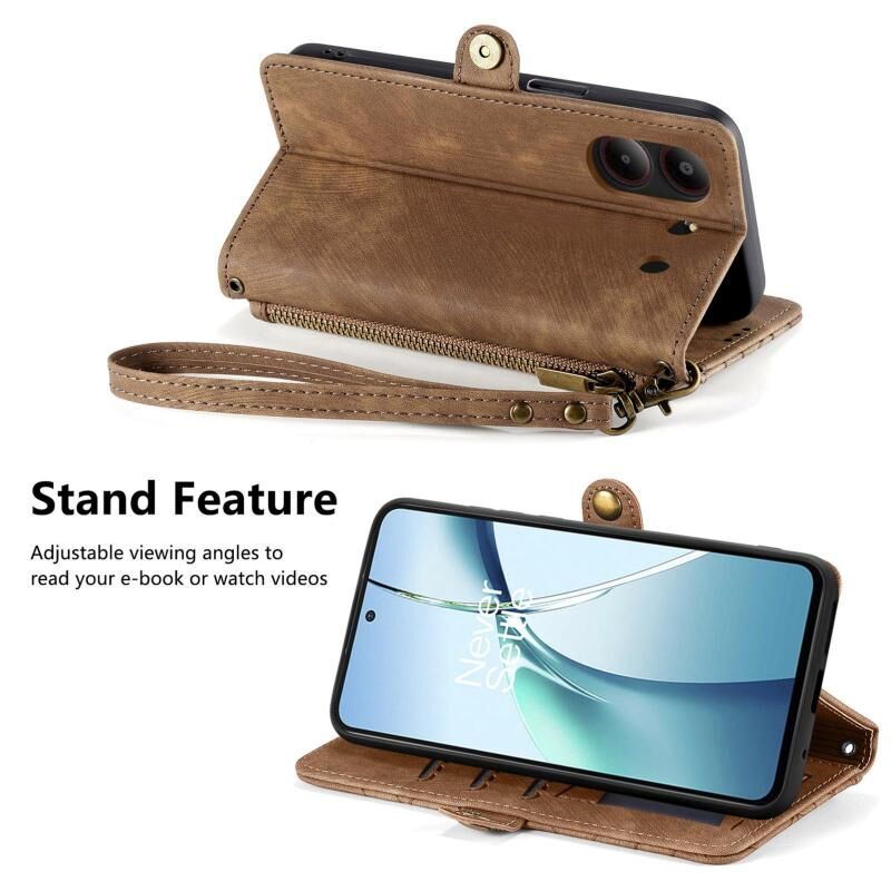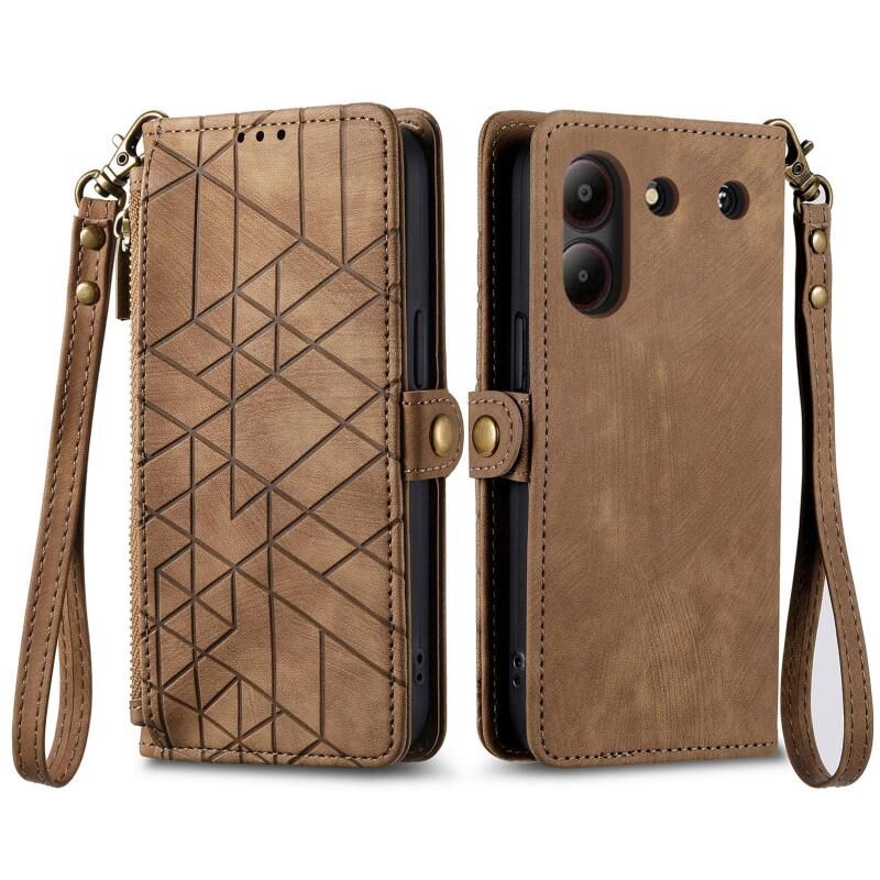 For ZTE Blade A54 Geometric Zipper Wallet Side Buckle Leather Phone Case(Brown)