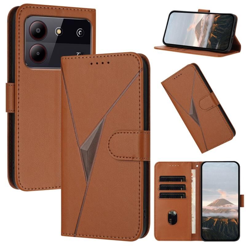 Θήκη τηλεφώνου από δέρμα με κούμπωμα τριγωνικού μοτίβου για ZTE Blade A54 (Χρυσό)