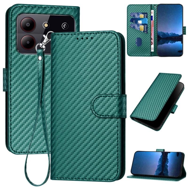 For ZTE Blade A54 YX0070 Carbon Fiber Buckle Leather Phone Case with Lanyard(Dark Green)