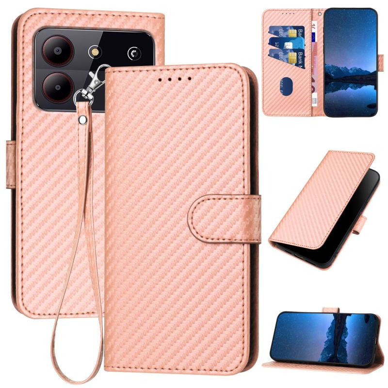 For ZTE Blade A54 YX0070 Carbon Fiber Buckle Leather Phone Case with Lanyard(Pink)