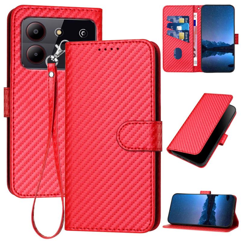 For ZTE Blade A54 YX0070 Carbon Fiber Buckle Leather Phone Case with Lanyard(Red)