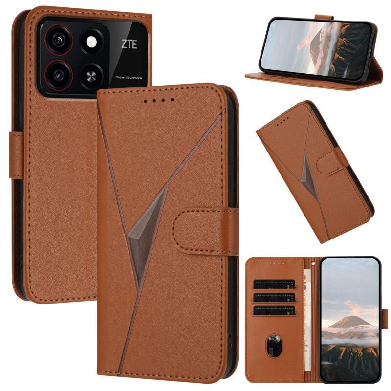 For ZTE Blade A55 / A35 Triangle Pattern Buckle Clasp Leather Phone Case(Brown)