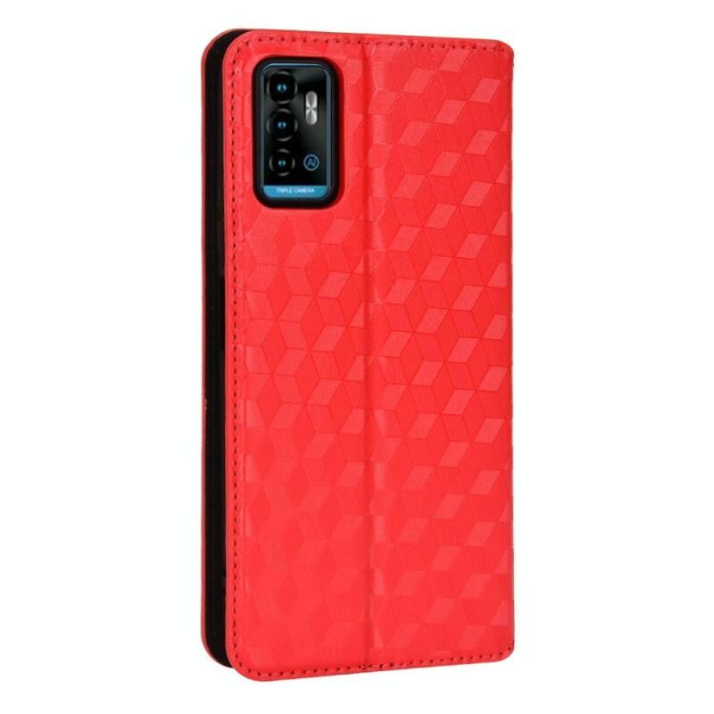 For ZTE Blade A71 / Optus X Swift 5G Cubic Grid Texture Flip Leather Phone Case(Red)