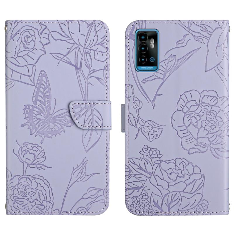 For ZTE Blade A71 Skin Feel Butterfly Peony Embossed Leather Phone Case(Purple)