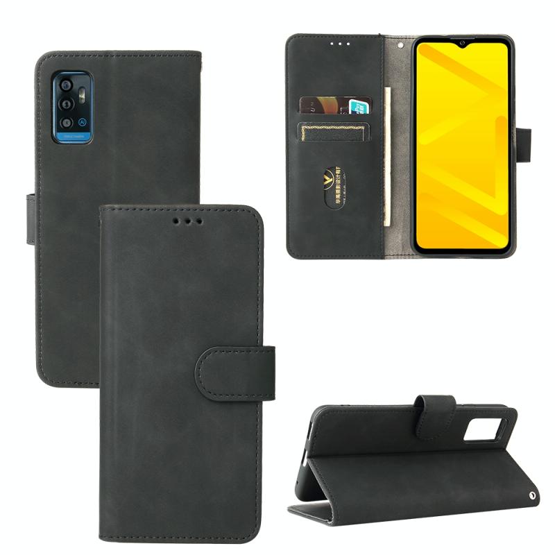 For ZTE Blade A71 Solid Color Skin Feel Magnetic Buckle Horizontal Flip Calf Texture PU Leather Case with Holder & Card Slots & Wallet(Black)