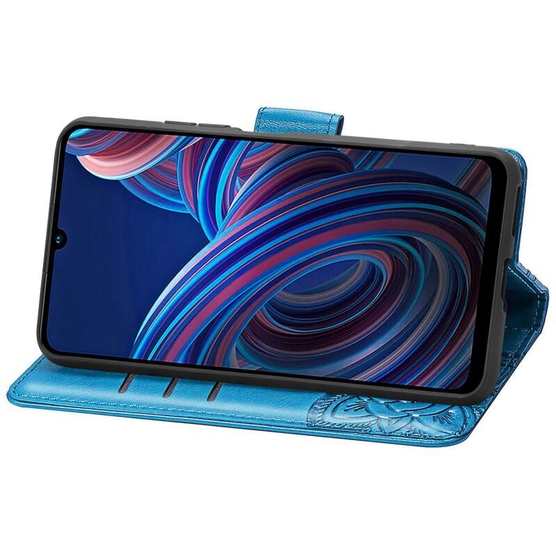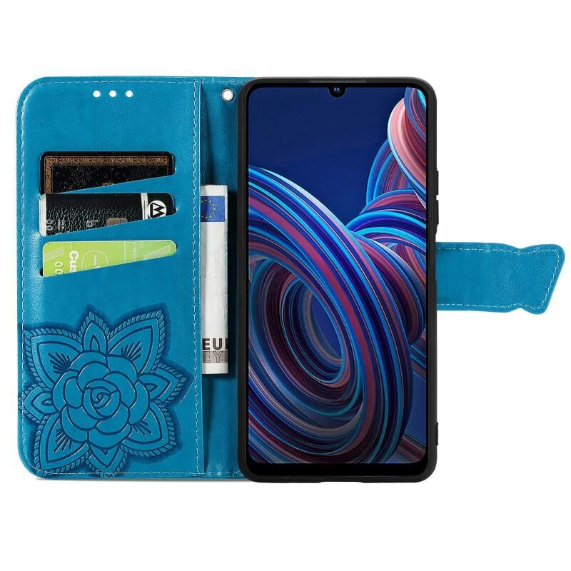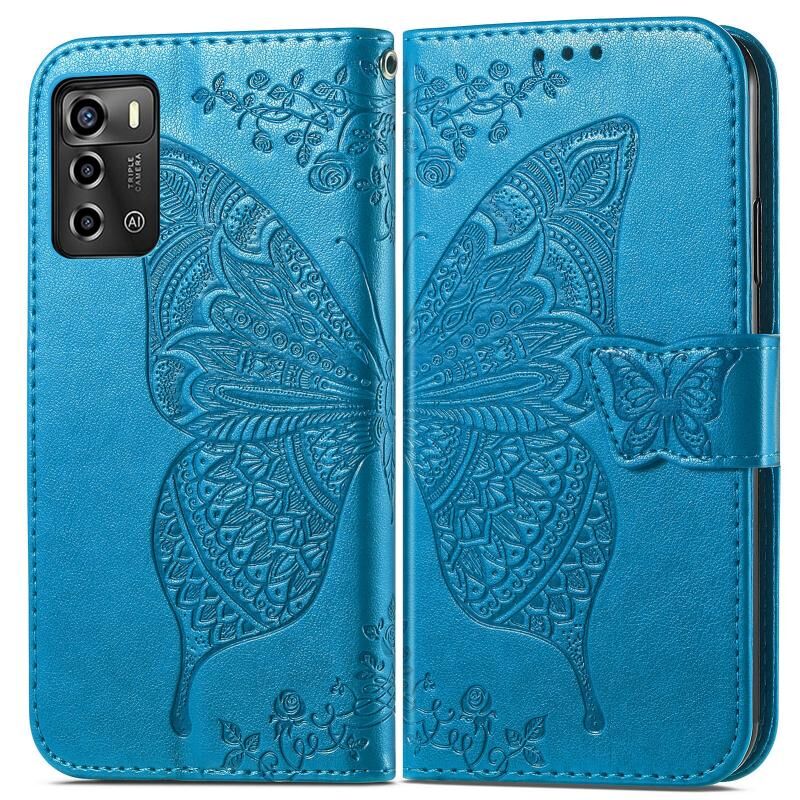 Θήκη τηλεφώνου από δέρμα με ανάγλυφο σχέδιο πεταλούδας και λουλουδιών για ZTE Blade A72 4G (Μπλε)