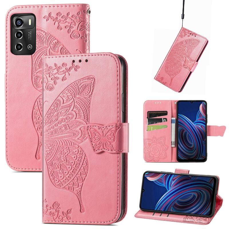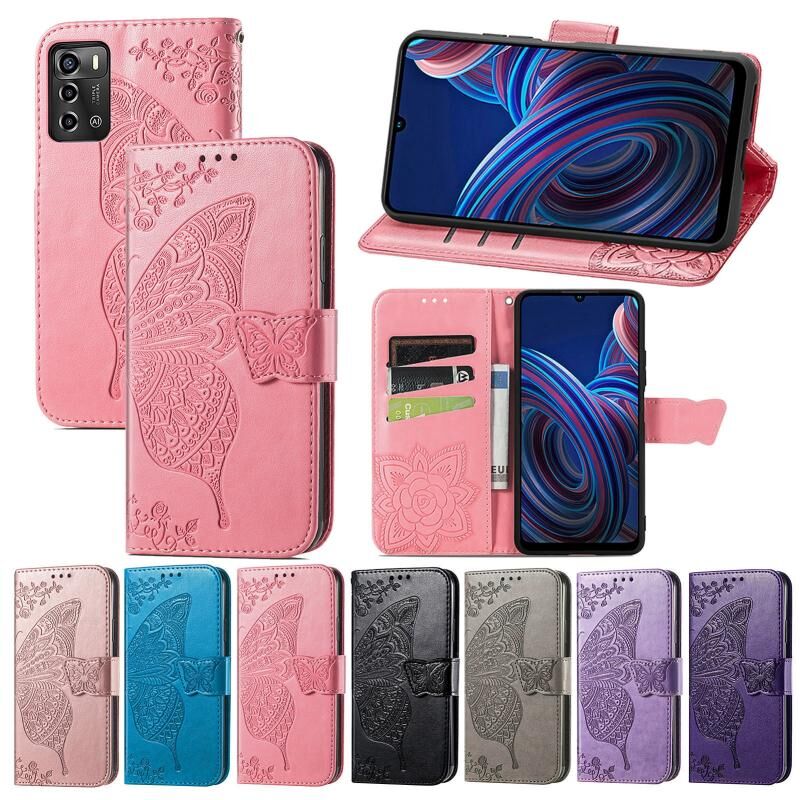 Θήκη τηλεφώνου από δέρμα με ανάγλυφο σχέδιο πεταλούδας και λουλουδιών για ZTE Blade A72 4G (Μπλε)