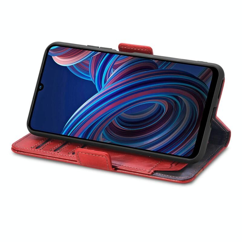 Για ZTE Blade A72 4G CaseNeo Splicing Διπλή μαγνητική πόρπη δερμάτινη θήκη τηλεφώνου (κόκκινο)