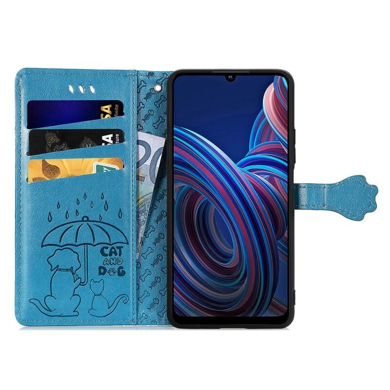 Θήκη τηλεφώνου από δέρμα με ανάγλυφα σχέδια χαριτωμένων γάτας και σκύλου για ZTE Blade A72 4G (Κίτρινο)
