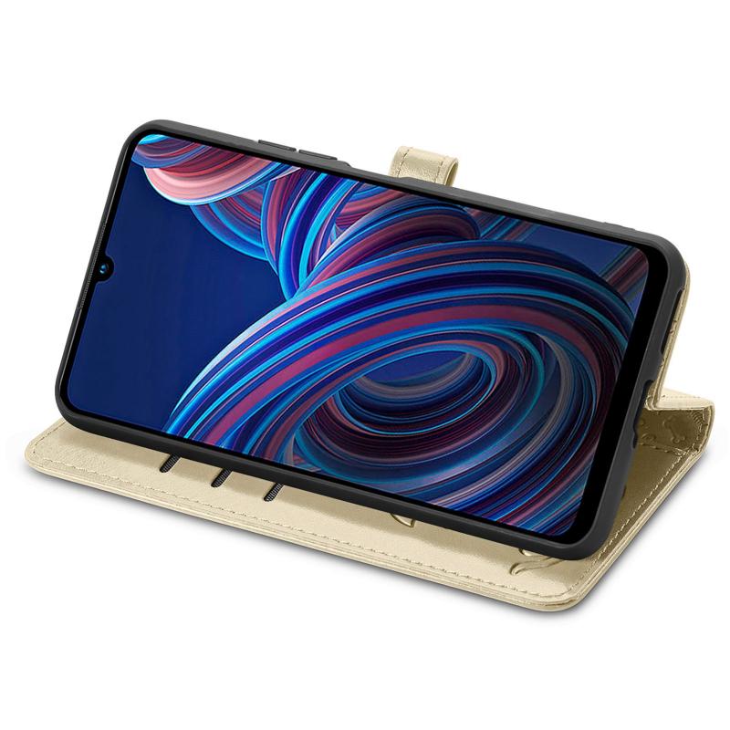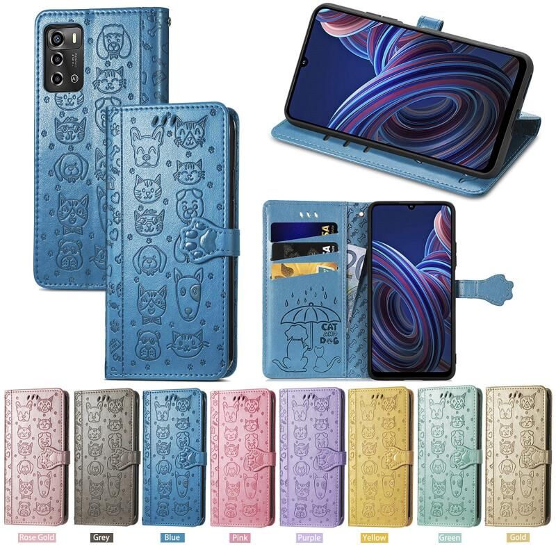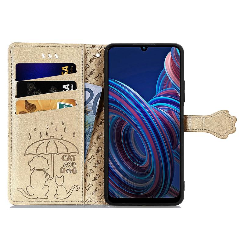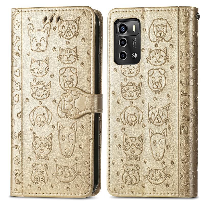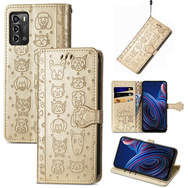 For ZTE Blade A72 4G Cute Cat and Dog Embossed Leather Phone Case(Gold)