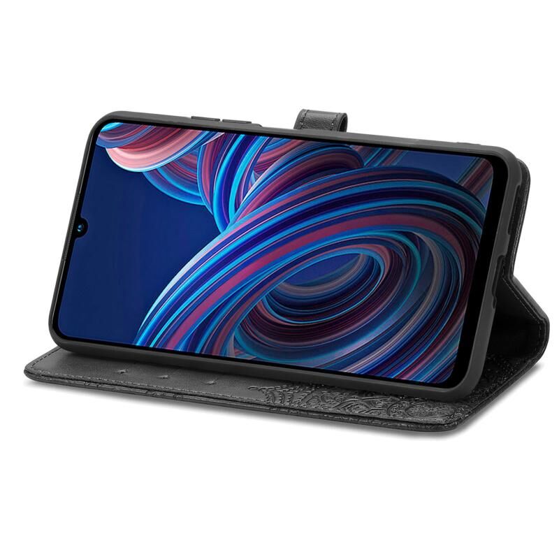 Για ZTE Blade A72 4G Mandala λουλούδι ανάγλυφο δερμάτινη θήκη τηλεφώνου (μαύρο)