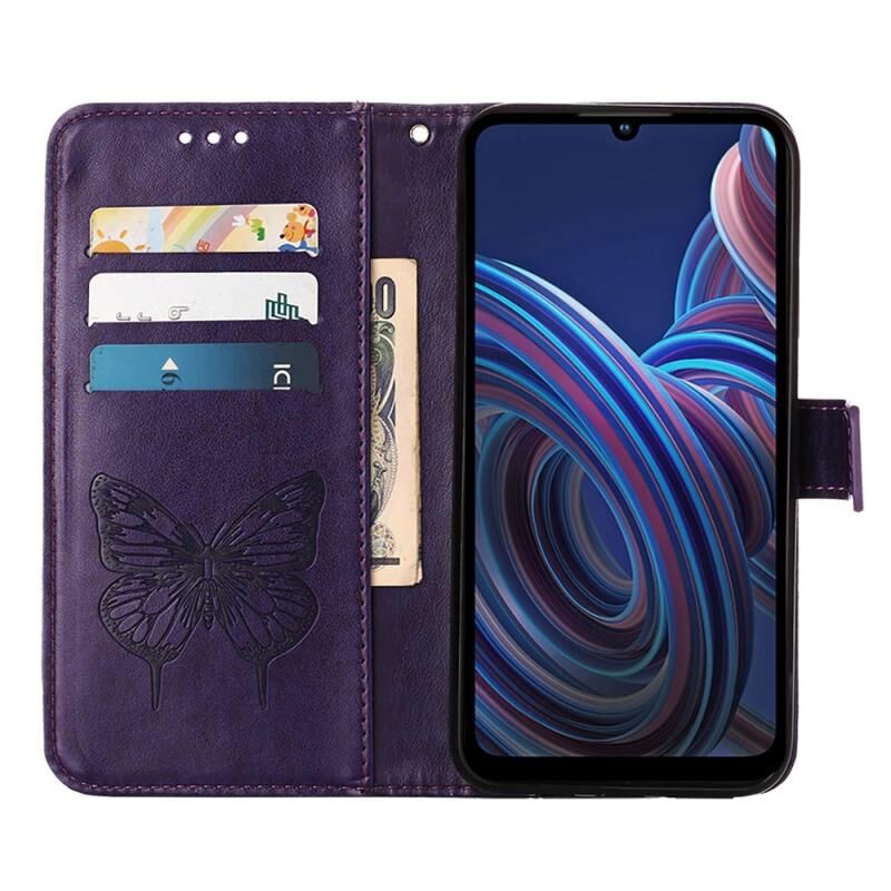 Θήκη τηλεφώνου από δέρμα με ανάγλυφο σχέδιο πεταλούδας για ZTE Blade A72 5G (Μπλε)