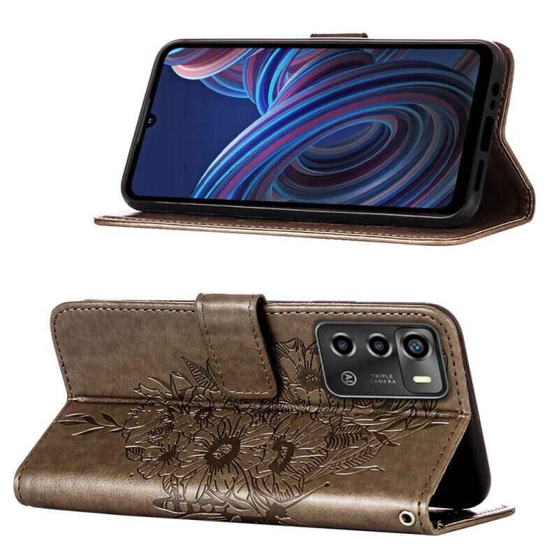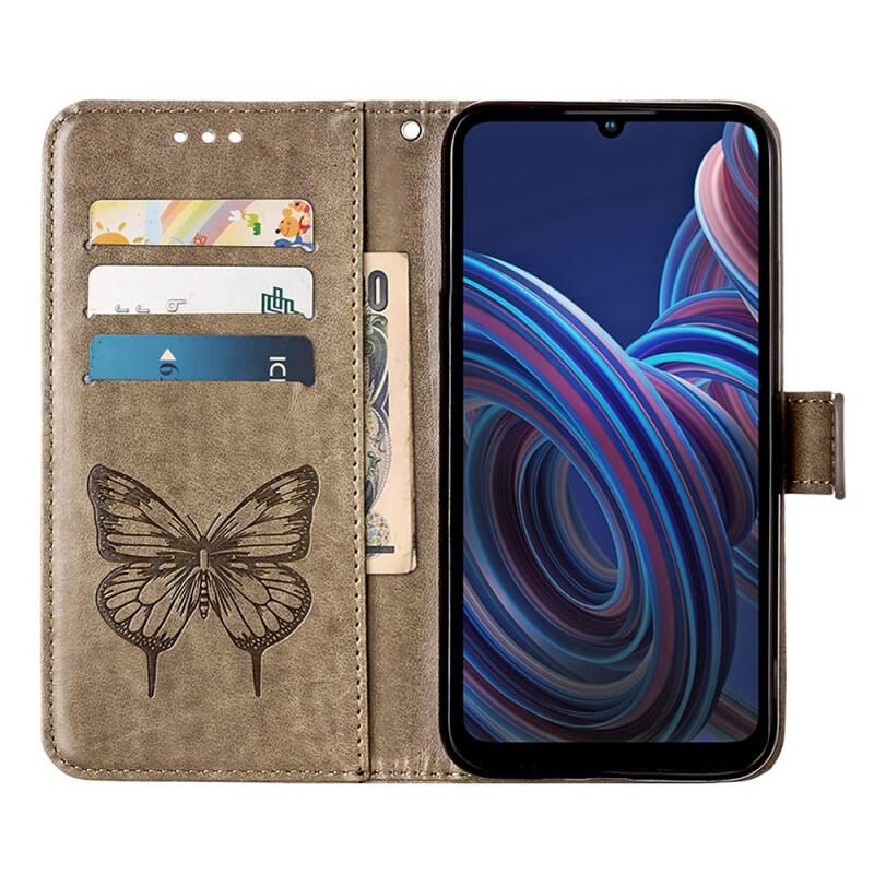 Θήκη τηλεφώνου από δέρμα με ανάγλυφο σχέδιο πεταλούδας για ZTE Blade A72 5G (Μπλε)