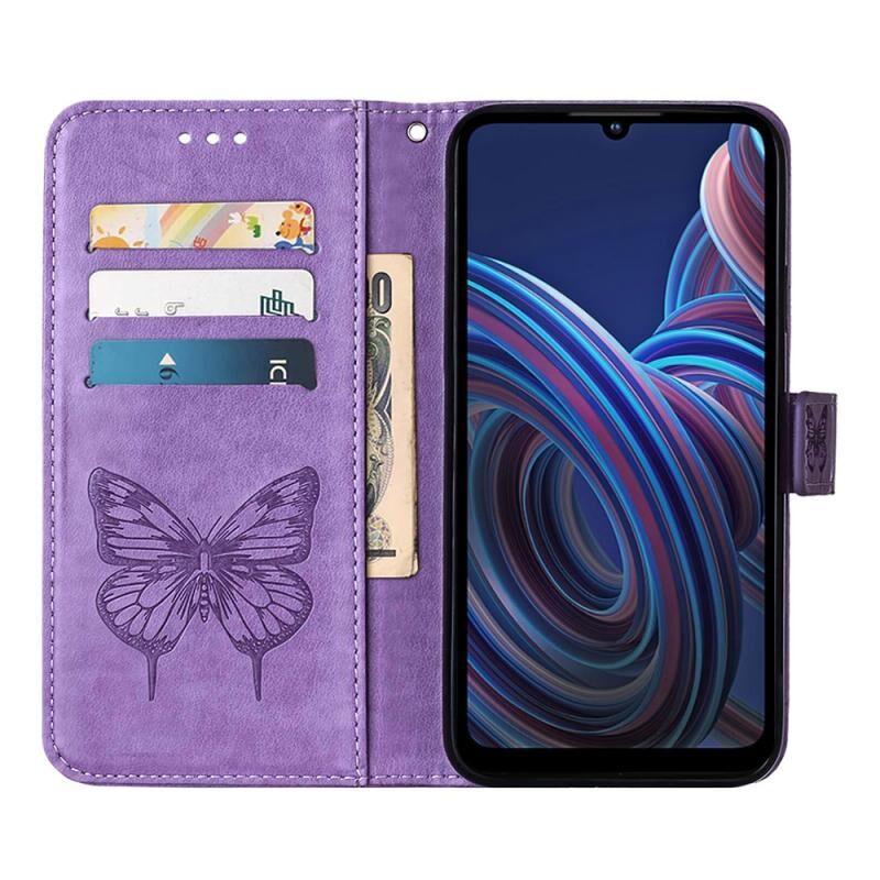 Θήκη τηλεφώνου από δέρμα με ανάγλυφο σχέδιο πεταλούδας για ZTE Blade A72 5G (Μπλε)