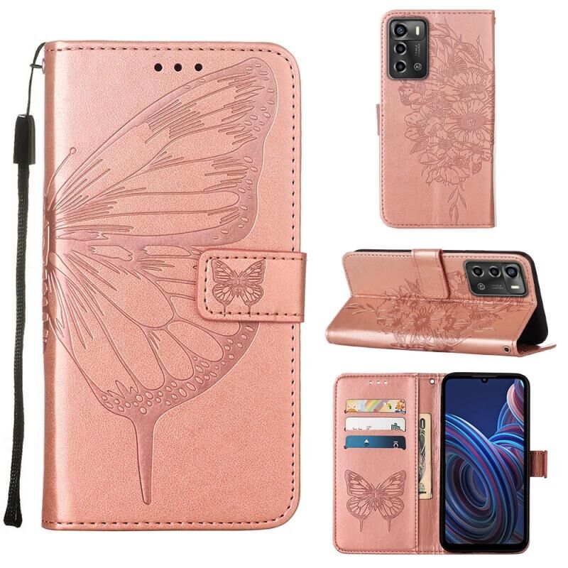 Θήκη τηλεφώνου από δέρμα με ανάγλυφο σχέδιο πεταλούδας για ZTE Blade A72 5G (Μπλε)