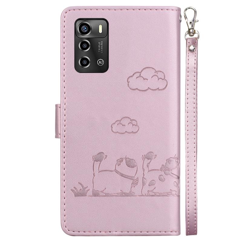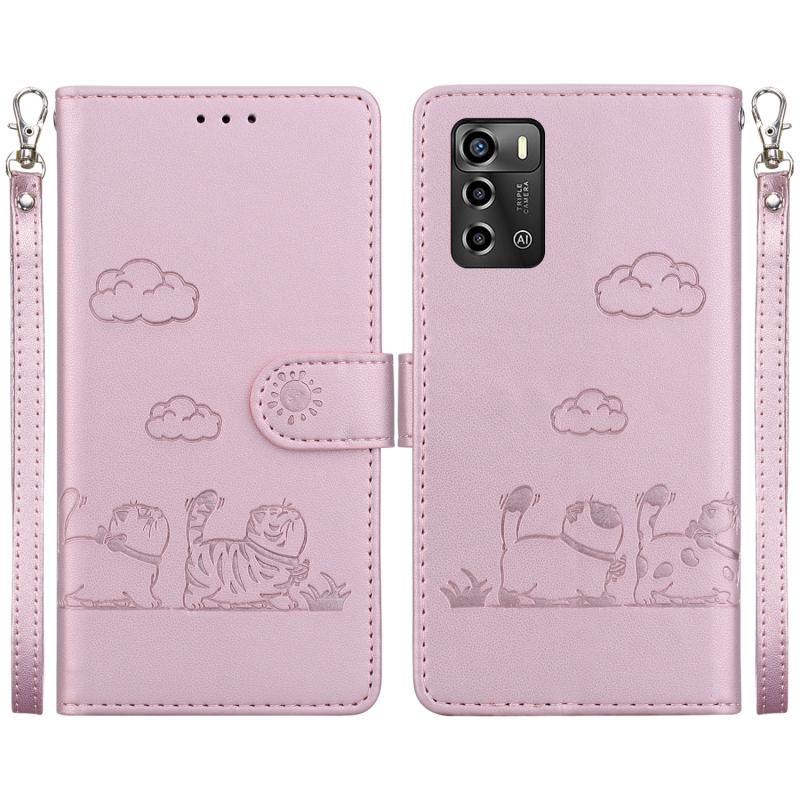 For ZTE Blade A72 / V40 Vita Cute Cats RFID Leather Phone Case(Rose Gold)