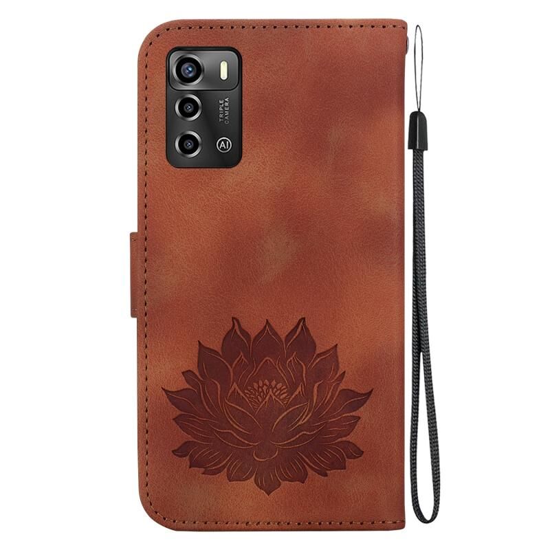Για ZTE Blade A72 / V40 Vita Lotus ανάγλυφη δερμάτινη θήκη τηλεφώνου (καφέ)