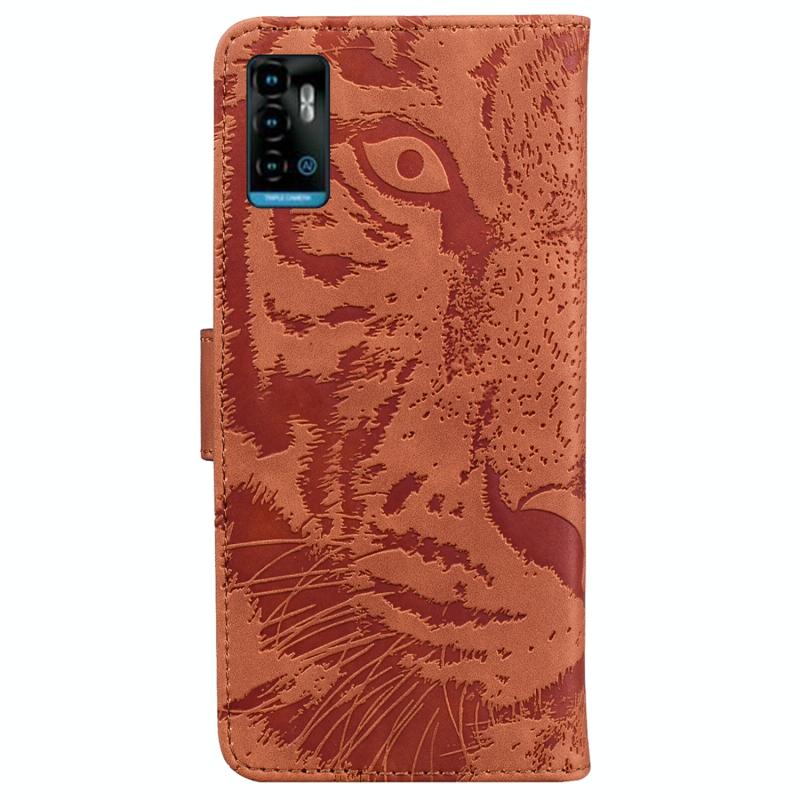 For ZTE Blade A72 / V40 Vita Tiger Embossing Pattern Horizontal Flip Leather Phone Case(Brown)