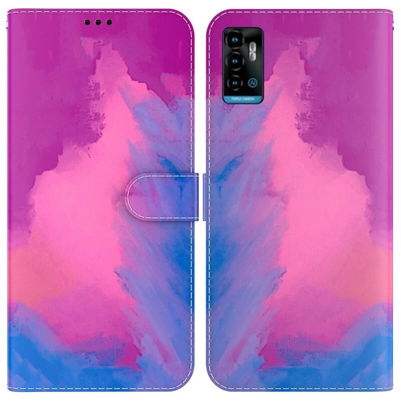 Για ZTE Blade A72 / V40 Vita Υδατογραφία μοτίβο οριζόντια Flip δερμάτινη θήκη τηλεφώνου (μοβ κόκκινο)