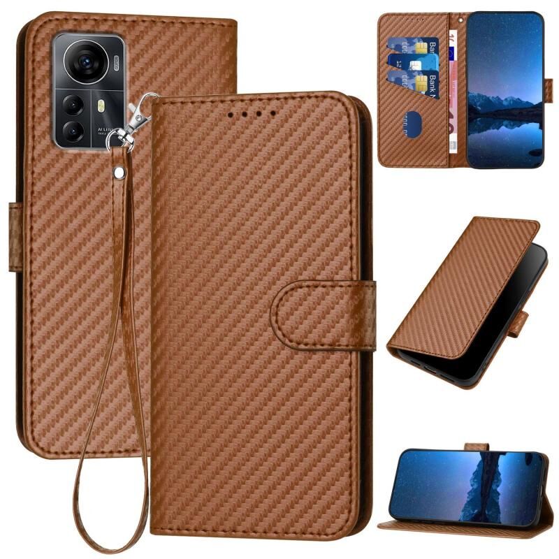 For ZTE Blade A72s YX0070 Carbon Fiber Buckle Leather Phone Case with Lanyard(Coffee)
