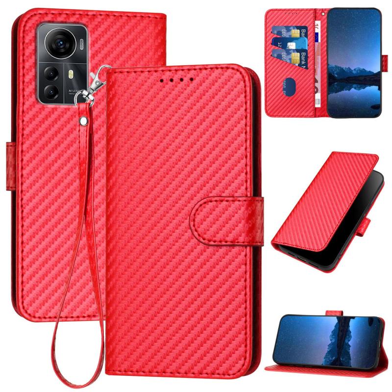 For ZTE Blade A72s YX0070 Carbon Fiber Buckle Leather Phone Case with Lanyard(Red)