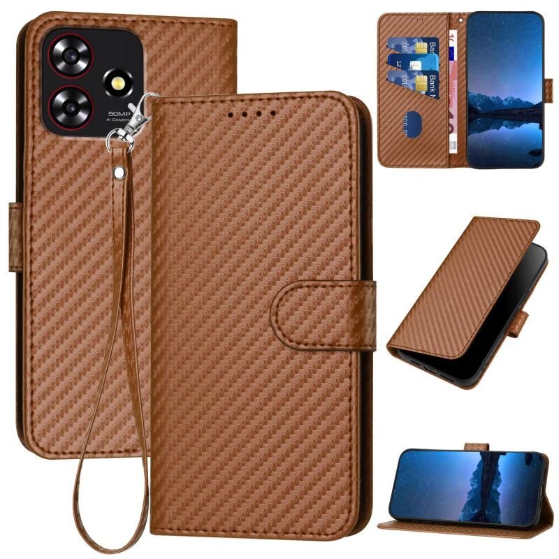 For ZTE Blade A73 4G / Blade V50 Design 4G YX0070 Carbon Fiber Buckle Leather Phone Case with Lanyard(Coffee)
