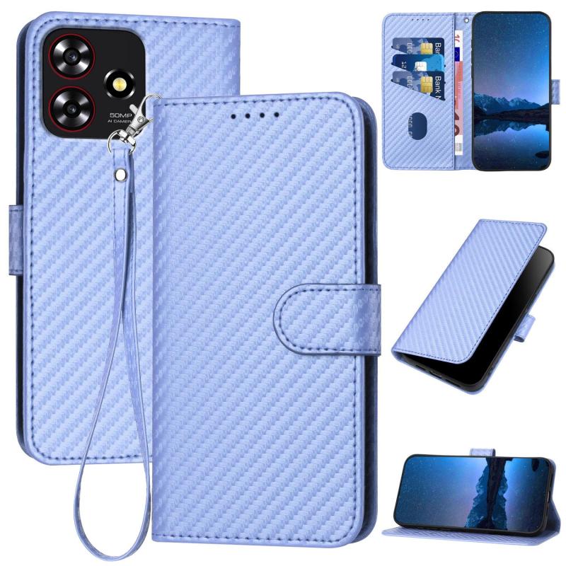 For ZTE Blade A73 4G / Blade V50 Design 4G YX0070 Carbon Fiber Buckle Leather Phone Case with Lanyard(Light Purple)